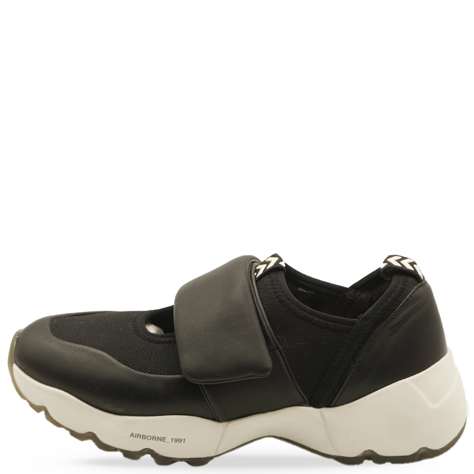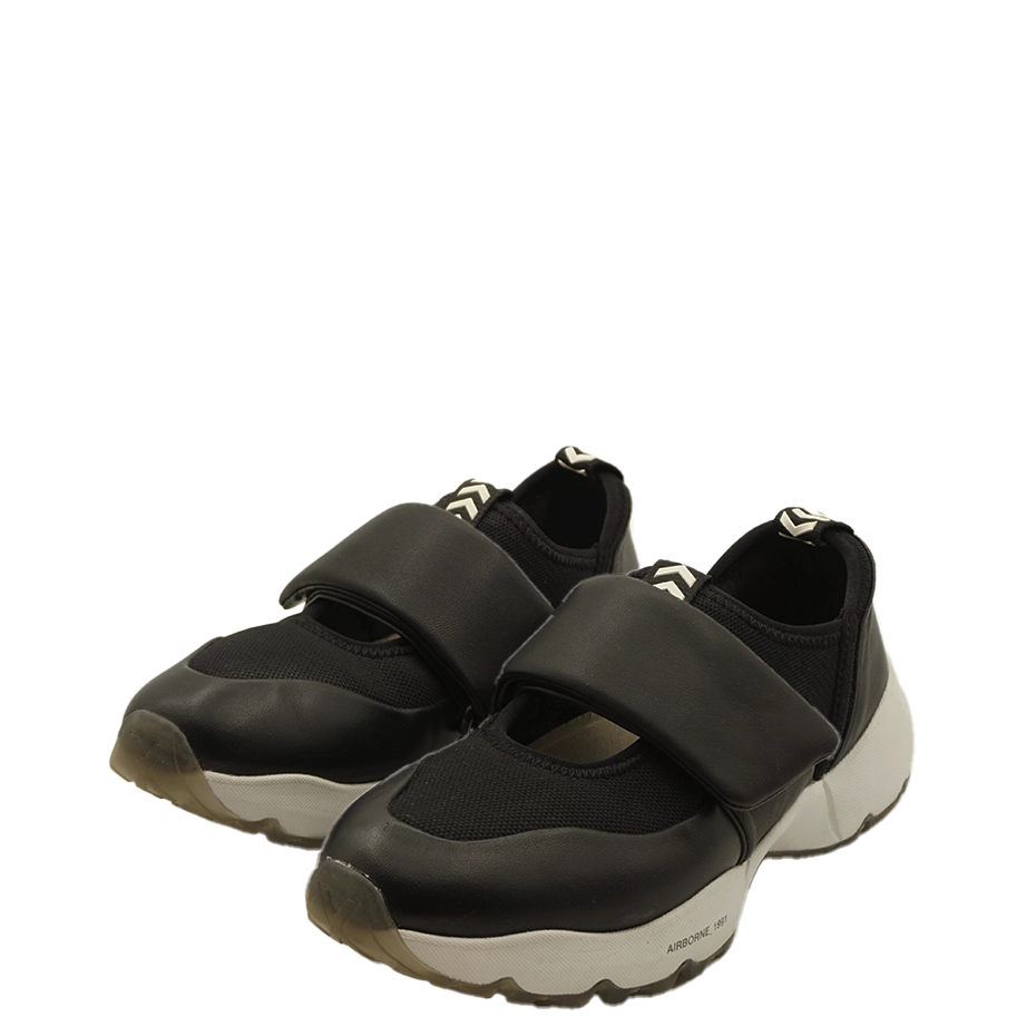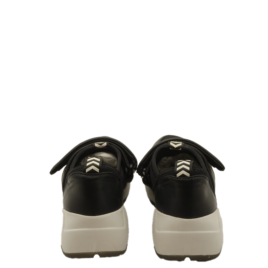 These O.X.S. trainers feature a sleek black leather and knit textile accents, as well as a velcro closure. Perfect for both casual and smart-casual wear.