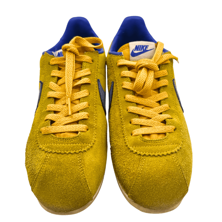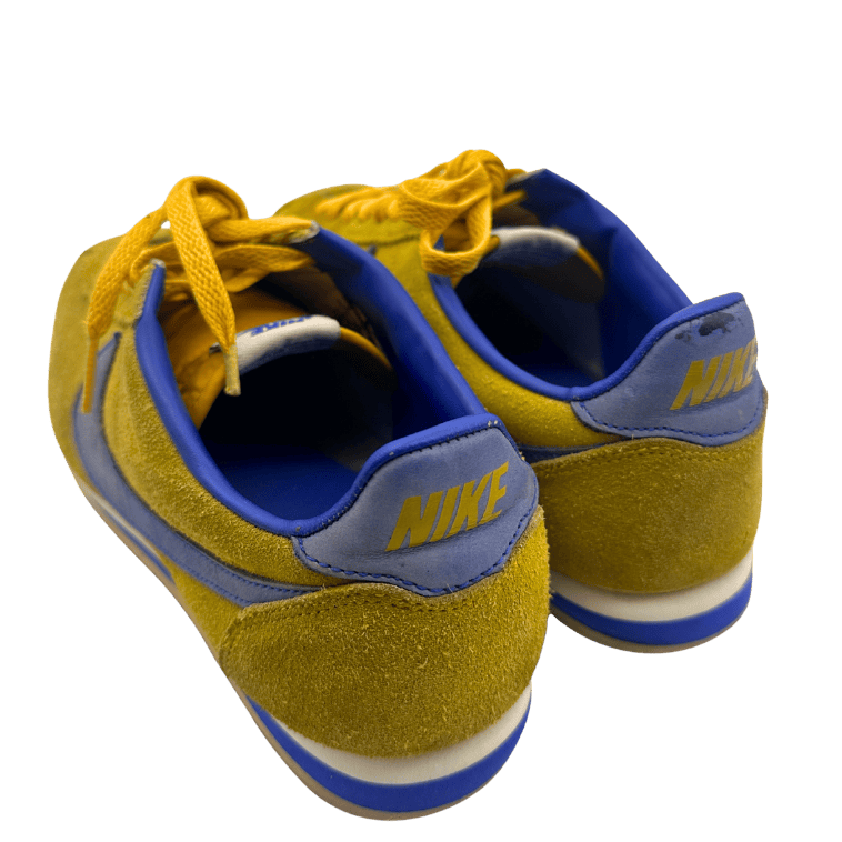 Nike's Classic Cortez in a yellow and blue colorway. Features a classic design with suede upper, a wide toe cap, swoosh and NIKE heel tab.